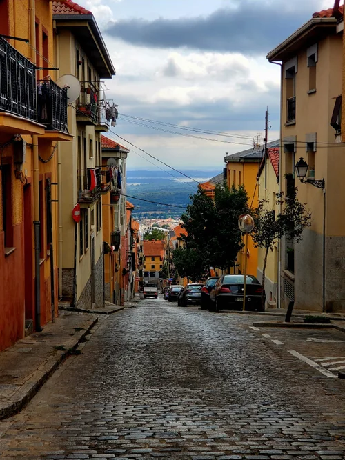 El Escorial is a small town about 56 km (34.5 miles) northwest of Madrid, Spain, going by bus, takes about an hour.